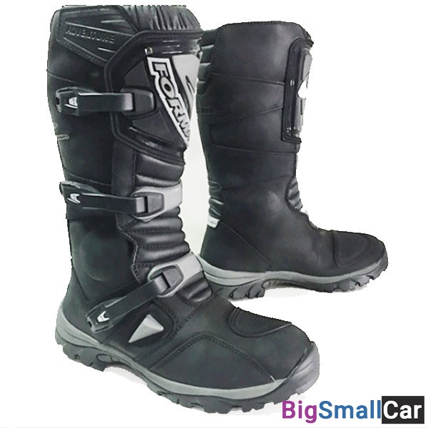 Кожаные туристические мотоботы с пластиковой защитой в области голени и лодыжки.