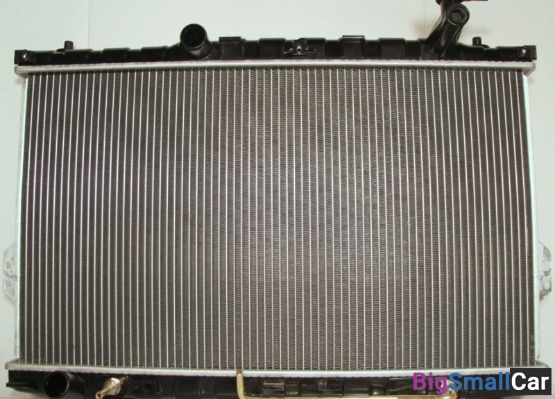 Радиатор охлаждения HYNDAI SANTA-FE 2001 - 2013 года выпуска . Устанавливался на все бензиновые моторы , с автоматической и механической коробкой передач , с климатом и без него .